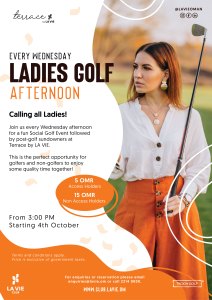 Calling all ladies! Join us every Wednesday afternoon for a fun social nine holes golf event followed by post-golf sundowners at Terrace by LA VIE. This is the perfect opportunity for golfers and non-golfers to enjoy some quality time together!