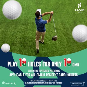 If you’re an Omani Resident Card Holder, don’t miss out on the opportunity to play 18 holes for only OMR 18! Offer is valid every Friday and Saturday on the month of November.
